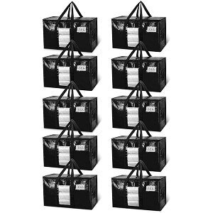 100L大容量、収納力抜群:抜群な特大引越しバッグの寸法:70 cm 35 cm 42 cm、10 パック。 両端のジッパーと中央に大きな開口部があるため、衣類、おもちゃ、靴、タオル、必需品、枕、寝具...