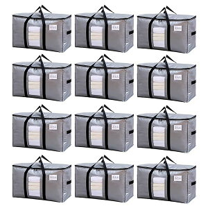 100L大容量、収納力抜群:抜群な特大引越しバッグの寸法:70 cm 35 cm 42 cm、12パック。 両端のジッパーと中央に大きな開口部があるため、衣類、おもちゃ、靴、タオル、必需品、枕、寝具、シーツ...