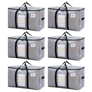布団収納袋 引越しバッグ 収納ケース 特大容量 透明窓 持ち手付き 衣装ケース 洋服 衣類 羽毛布団 防塵防水 折りたたみ式 大きいバッグ 省スペース 耐荷重 キャンプ 旅行 6個セット グレー 【大容量...