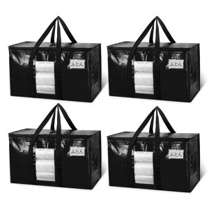 100L大容量、収納力抜群:抜群な特大引越しバッグの寸法:70cm35cm42cm、4パック。両端のジッパーと中央に大きな開口部があるため、衣類、おもちゃ、靴、タオル、必需品、枕、寝具、シーツ、毛布、洗濯物...