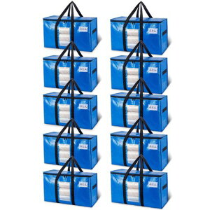100L大容量収納力抜群:抜群な特大引越しバッグの寸法:70cmX35cmX42cm、10パック。両端のジッパーと中央に大きな開口部があるため、衣類、おもちゃ、靴、タオル、必需品、枕、寝具、シーツ、毛布...