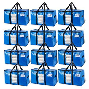 100L大容量、収納力抜群:抜群な特大引越しバッグの寸法:70cm35cm42cm、12パック。両端のジッパーと中央に大きな開口部があるため、衣類、おもちゃ、靴、タオル、必需品、枕、寝具、シーツ、毛布...