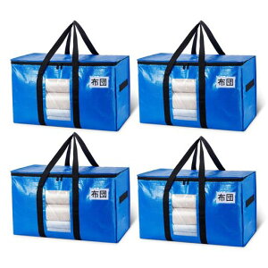 大きいバッグ 布団収納袋 引越しバッグ 収納ケース 特大容量 透明窓 持ち手付き 衣装ケース 洋服 羽毛布団 防塵防水 折りたたみ式 カバン 省スペース 引っ越し 背負える キャンプ 旅行 耐荷重 ブルー...