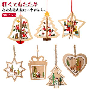 軽くてあたたかみのある木製オーナメント。【9個セット】クリスマスツリーの飾りや、ドアや壁などに掛けてお部屋のインテリアとしても楽しめます。9/8個でセットになっているからコーディネートに悩むことなく、素敵なクリスマスツリー