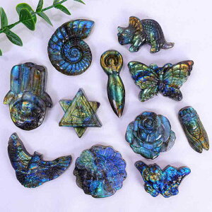 ・素材: 水晶・カテゴリ: 幾何学模様・種類: 天然水晶ラブラドライト彫刻品、ラブラドライト原石装飾置物・モチーフ: ラブラドライト展翅フクロウ、ラブラドライト手のひら悪魔の目、ラブラドライト巻貝、ラブラドライトガイア女神...