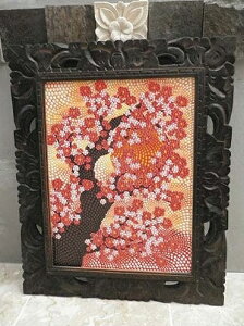 ・商品詳細 バリ島の現地画家さんによるドットペイント。 1cmに満たない小さな点を、手書きにて置いて描く、非常に手間のかかる絵画です。 ピンクのサクラをドットで描がいた、春のような温かみのあるアートパネルです。 木枠付き。
