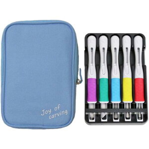 安全性・携帯性・強度を追求して開発した、ロック付のプラケース入り彫刻刀です。 スタンドが付いていて、たいへん取り出し易くなっています。 ハンドルは、ABS樹脂+エラストマー樹脂の二重構造。 表面のエラストマー樹脂は...
