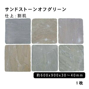 石 種 砂岩 サンドストーンオフグリーン 形 状 方形(長方形) 仕 上 げ 割肌 サ イ ズ 約600x900x30〜40mm 入数/重量 1枚/約40kg 梱包仕様 緩衝材巻き+木製パレット使用 送 料 全国送料無料 *北海道...