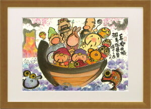 「和風」「取寄品」 御木幽石 ほっとひといき YIF-04 福福額 フレーム付きポスター/ジグソーパズルの発売10周年記念の特別企画。。/お地蔵さん、ねこ、いぬなどの可愛いイラストと癒され前向きになれる書で大人気の「御木幽石」...