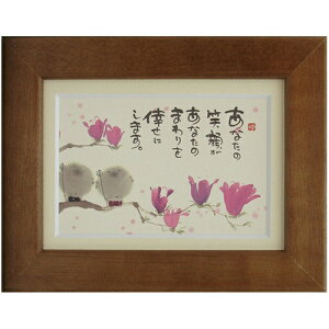 癒しの書家【御木幽石】のミニ額装《ほほえみ》です。 やわらかく可愛らしい絵柄と心温まるメッセージが描かれています。 手のひらサイズの小さな額で置き場所を選びません。季節に合わせたイラストが豊富なので、ひとつでも...