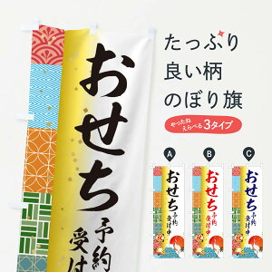 名入れについて雑貨|販促グッズ|名入れのぼりのぼり旗「おせち」姉妹店「はたはた旗」製作のセミデザインのぼり旗です。 質の高いデザインに店名や団体名などを名入れできる半オーダーメイド式オリジナルのぼり旗。横断幕|のぼり旗|