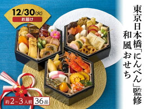 【商品説明】1699年創業の東京・日本橋に本店を構える鰹節専門店「にんべん」が監修したおせち。「にんべん」のだし汁を使って炊き上げた穂付筍や寿高野豆腐などを詰合せたおせちです。【仕様】●三段重●約2〜3人前●お重サイズ(外寸):