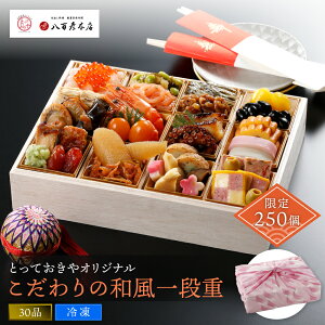 とことん味にこだわった冷凍おせちが完成!老舗の心と技で一品一品手作りし、冷凍でもおいしいおせちです。お二人用でバラエティー豊かな30品目を少しずつ一段重に盛り込みました。 名称『とっておきやオリジナル 冷凍和風一段重』≪全