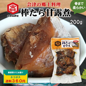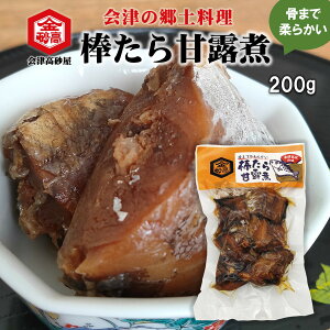 商品情報 会津の代表的な郷土料理「棒たら甘露煮」です。 山深い会津の地では、棒たらや身欠きにしんなど、海産物の乾物が貴重な蛋白源でした。 正月やお祝いなどの特別な日のご馳走として振舞われることも多い逸品です。 会津高砂屋の