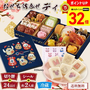 ※商品は予告なく一部情報が変更となる場合がございます。ご了承ください。商品特徴ミッキーやミニーの柄入り紅白蒲鉾やディズニーの柄入り切り餅などお子様も楽しめるおせちです。 【数量限定】内容量二段重、お重サイズ(外寸):縦