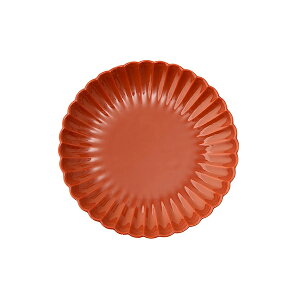 細かい輪花のフォルムが特徴的なプレート。プレートの縁が立ち上がっているので、汁気のある料理やデザートの盛りつけにもおすすめです。黄みに寄った温かみのある赤色で、既存の「波佐見焼 小皿 梅」の色合いとぴったり。白い食器と