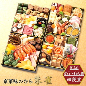 ■黒と金の四段重に52品目、食材一つ一つ拘って選び、手間暇かけて仕上げた極上の味わいを詰合せました。家族が一堂に集うお正月にふさわしい、重厚感溢れる華やかなおせちです。「ハレ」の日のおめでたさが漂う、慶びの一品です。 【