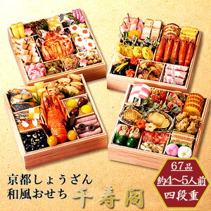 ■しょうざんの料亭「千寿閣」監修のおせちになります。ロブスター・あわび・花咲ガニ・大ぶりな海老など与段重の全てに目を引く豪華な料理を配し、おせちの定番や魚介類、肉類、煮物などバランス良く67種の料理を盛り込んだ充実の内