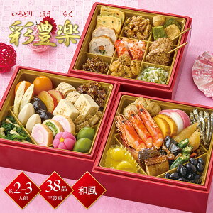 ※商品は予告なく一部情報が変更となる場合がございます。ご了承ください。商品特徴お正月の伝統的なおせち食材を彩よく盛込んだおせちです。肉・魚・甘味なども楽しめるように和の食材を盛込みました。内容量三段重、お重サイズ(外