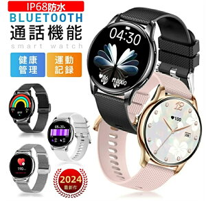 sApp/Line通知 iphone android対応着信表示 可愛いいスマートウォッチ 通話腕時計 女性機能目...