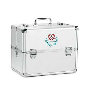 ケットも付いて、ガーゼ、絆創膏、めん棒、聴診器、家庭常備薬等を整理することができる薬箱です。 この救急箱の前ポケットには2つオーペンポケットと下部スロット付きの6つのゴムバンドがあります。ゴムバンドには体温計...