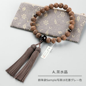 【メール便送料無料】【レビュー記入で念珠袋プレゼント】 素挽紫檀に茶水晶(スモーキークォーツ)を天玉に使用して仕立てられた男性用片手念珠! どの宗派でもご利用いただけます。...