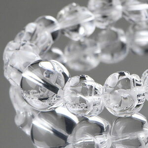 コメント 本水晶にドクロの顔を彫った数珠ブレスレットでございます。髑髏は人の最後の姿であると共に、そこから生まれ変わり、やり直す「再生」「復活」といった意味があります。こちらのブレスレットは、愛嬌を感じる髑髏がアクセン