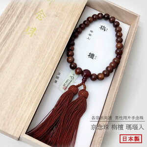スペック ●商品名 京念珠 男性用 栴檀 瑪瑙入 桐箱入り ●素材・寸法 親玉:栴檀 14.1mm 主玉: 瑪瑙 11mm 二天玉:瑪瑙 8.2mm 房:正絹房【色:茶色] ●生産国 日本 特徴...