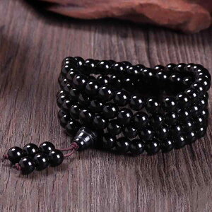 数珠袋と赤い安全ひもが付いています。 天然木を使用し、細かくて丁寧に研磨して加工します。天然木の香りが付きます。 数珠、念珠はお守りです、厄除け、魔除け、招福、心願成就、良縁成就、金運招財、開運厄除、財運向上、開運、無病息災...
