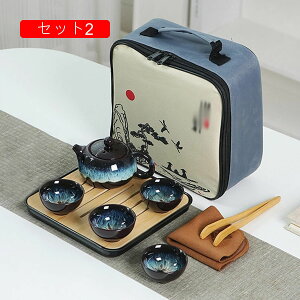 旅行ティーセット 携帯用 旅行 収納バッグ付き 陶器 急須 湯呑セット マルチ ティーセット 茶器 茶皿 茶器乾燥ティートレー 旅行ティーセットーカップシンプルな和風 陶器 ティーポット 茶器 商品紹介 【