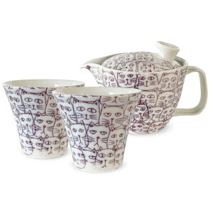 J-kitchens 急須 240ml ペア 湯呑み セット 波佐見焼 日本製 1人用 ~ 2人用 茶こし付き 撥水キャッツ 茶器 セット パープル材質:磁器(食器洗い機使用可能、食器乾燥機使用可能)...