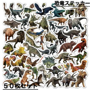 、たっぷり50枚入った男の子に大人気のダイナソーステッカーセットです。 かっこいいリアルな恐竜とアニメ風の恐竜が入った大容量!! スーツケース、車、バイク、自転車、スノーボード、ギター、ヘル