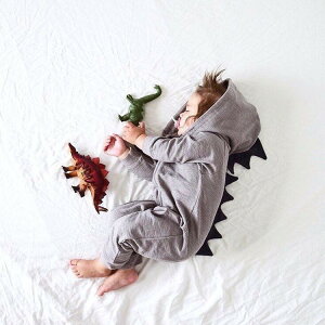 帽子ロンパースで赤ちゃんが恐竜に変身する可愛すぎるアイテムです! 春夏からハロウィンまで、羽織を着たり肌着にすれば1年中大活躍! チャック&股下ボタンで着替えやすくておむつ替えも楽々! 可愛い赤ちゃんの時期しか楽