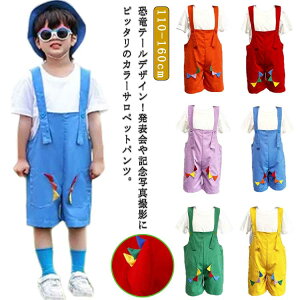 恐竜テールデザイン!発表会や記念写真撮影にピッタリのカラーサロペットパンツ。明るい色合い、こどもをより可愛く映えます。ダンス、体操、イベントなどのチームウェアとしてオススメ。シンプルでおしゃれなデザイン...