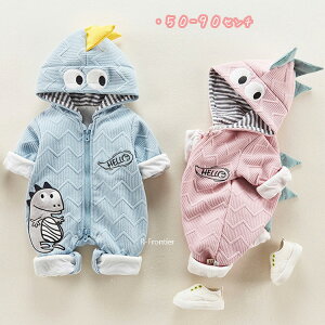 【商品紹介】【キューな恐竜ロパース】大人気の恐竜デザイ!可愛いフードと恐竜の足跡がリされた靴下付き。肌ざわりの良い柔らかい素材で保温性バツグ。股下スナッボタで着替え簡単。男女兼用で、退院祝いや入園祝い...
