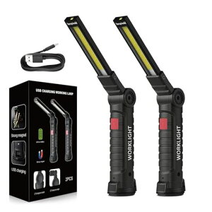 COBLED(強)、COBLED(弱)、先端LEDライト、赤いライト、赤いライト点滅5つモードを切替します、作業に合わせてモードを簡単に調節可能。 USB充電式ワークライト:LED作業灯は内蔵2000mAhリチウムイオン...
