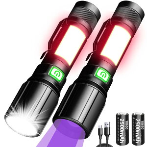 【3 IN 1多機能懐中電灯】ledライトはUV機能+COB LEDライト+マグネットベースを同時に備えています。紫外線ライト機能は、偽造紙幣の識別に役立ちます。サイドライトは赤白の2灯式で、火山噴火...