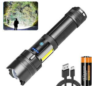 懐中電灯 強力 9100lm【XHP160LED 高輝度モデル】Type-C 懐中電灯 充電式 【7照明モードメイン3+COB4】 強力 軍用 最強 ハンディライト 26650/18650/単4電池適用...
