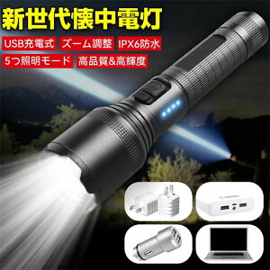 トはCREE-T6 LED&COB ライトが搭載し、市販の単ビーズ電灯より明るくて、長持ちなものである。COBを採用した面発光で辺りをしっかり照らします。一般的な丸電球の懐中電灯と異なり、”面”で幅