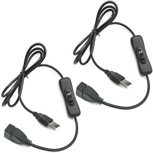 スイッチ付き USB電源ケーブル 充電 給電 データ通信 2.4A データ転送をサポートランプ ライト 扇風機 温風機 USBメモリ スピーカー等に適用 黒 (2本入り) 送料無料 【材質】ケーブル内部は導電...