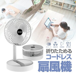 コードレス扇風機 USB充電式 折りたたみ扇風機 コードレス リビング7200mAh電池 首振り 風量4段階 タイマー機能 リズム自然風 高さ無段階調節 コンパクト収納 静音 省エネ DCモーター搭【4段階風量&7枚羽根】