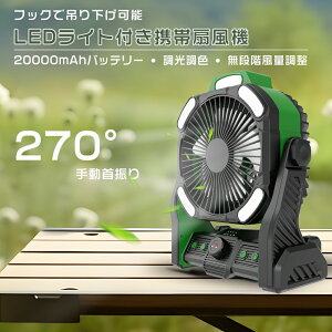 商品名 充電式 扇風機 卓上 吊り下げ LEDライトの電力 3W 出力電力 16W 入力電圧 DC5.0V/2.0A バッテリー容量 20000mAh 風量調節タイプ >無段階風量調整 羽根 5+3枚...