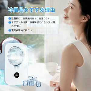 商品情報【多機能冷風機】送風、冷却加湿機能を揃えている冷風機小型ミニクーラーです。普通の扇風機より涼しく、噴霧機能を追加、水が超音波で加工され、繊細なミストになります。、エアコンほど寒くならないので日中でも快適に利用