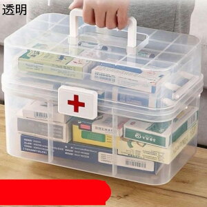 取っ手付き透明蓋 薬箱 3層折り畳み式 救急箱 応急ボックス ピルボックス 携帯用常備薬 絆創膏 包帯 体温計 防災用 高齢者 子供 家庭用