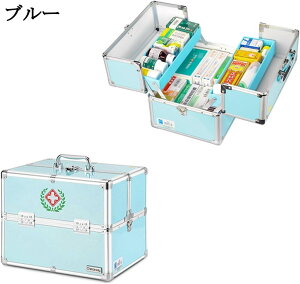 医療 薬 救急箱 応急ボックス 大容量 金属ステンレス 手提げ 取り外しトレイ 携帯用 常備薬 絆創膏 包帯 体温計 防災 家庭用