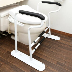 壁や床に穴を開けること無く、置くタイプの手すり。立ち座りの動作をしっかりサポートできるのは両手タイプは、 便器に座った時にひじ掛け代わりにもなり、排泄しやすい前傾姿勢をとる手助けにもなります。工事不要で設置できるので...