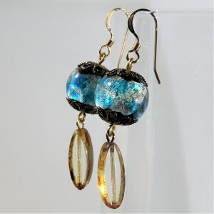 大阪産とんぼ玉、チェコビーズ、14金ゴールドフィルドを使った贅沢な大人ピアス。 優しい色のガラスと、金色の輝きが、凛とした和美人にぴったり。 和テイストのチェコビーズを偶然見つけ、一目惚れしてしまいました...