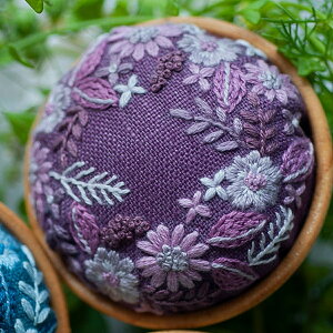 『yulaの刺繍 草花の処方箋』刺しゅうキットシリーズ 優しい色合いと、ふっくらと刺した花の刺繍が魅力の、yulaさんの著書「yulaの刺繍」に掲載された作品をキット化しました。 巾着 ミニリース ミモザの花は...