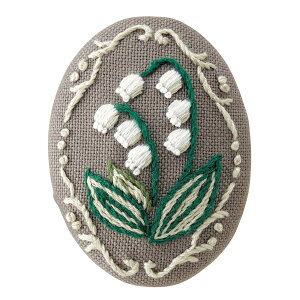 気軽に始められる小さな手作り♪ 繊細なフランス刺しゅうでブローチを作ってみませんか?可憐に咲くスズランが健気な雰囲気。刺しゅう糸、刺しゅう針もキットに含まれています。図案プリント済みなので、簡単にバランスよく刺しゅうが