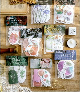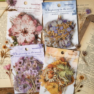 Whisper in the woods PET素材のフレークシール50枚入りです ふんわりとした色質感がリアルな押し花風で素敵です。 少ししっかりしたサイズの物も入っており、 1枚でも目を惹く存在感があります。 ブーケのようにコラー...